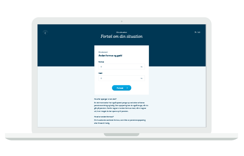 Pension Start is our online tool developed in collaboration with Denmark’s leading experts. You will receive an invitation to Pension Start via email. We recommend that you complete it as soon as possible to ensure that you have the right pension scheme – from the outset.