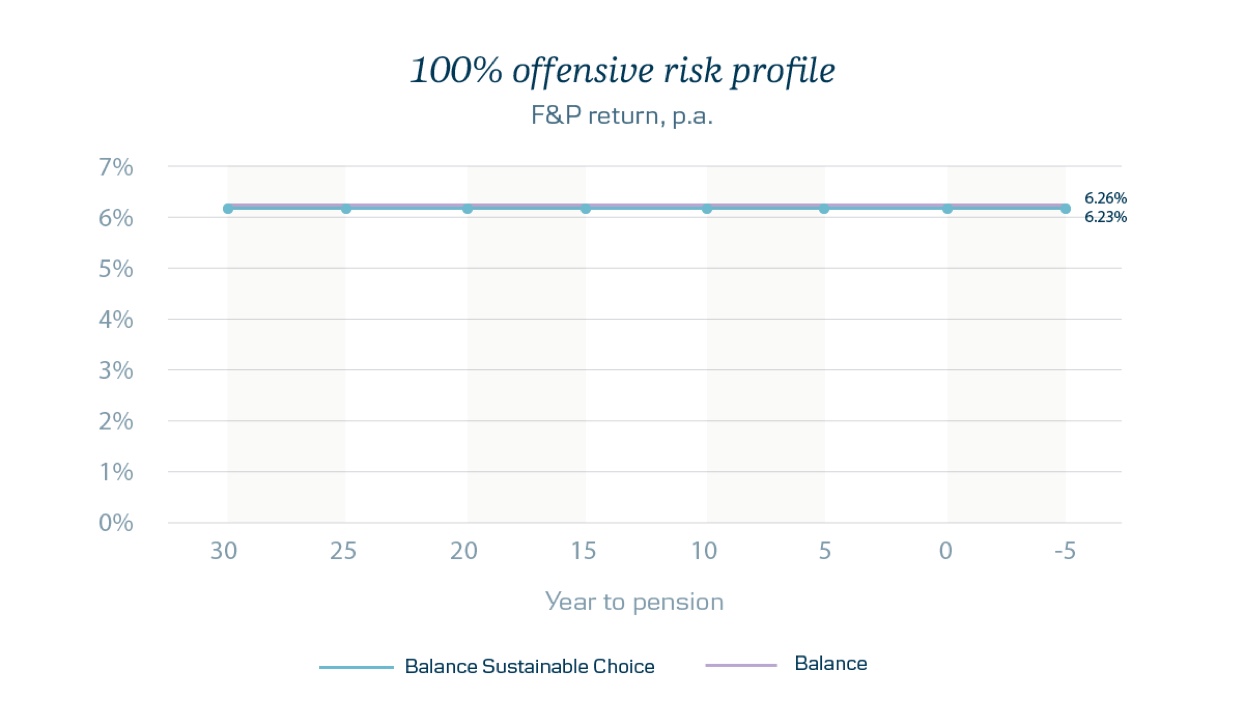 Investments are placed in a broad range of companies via a share index in order to ensure you a sound spread of risk. These investments follow an EU Paris-aligned benchmark, the framework of which has been set by the European Commission. The objective behind this benchmark is to construct investments that can support the Paris Agreement’s targets of limiting global warming to 1.5°C.
