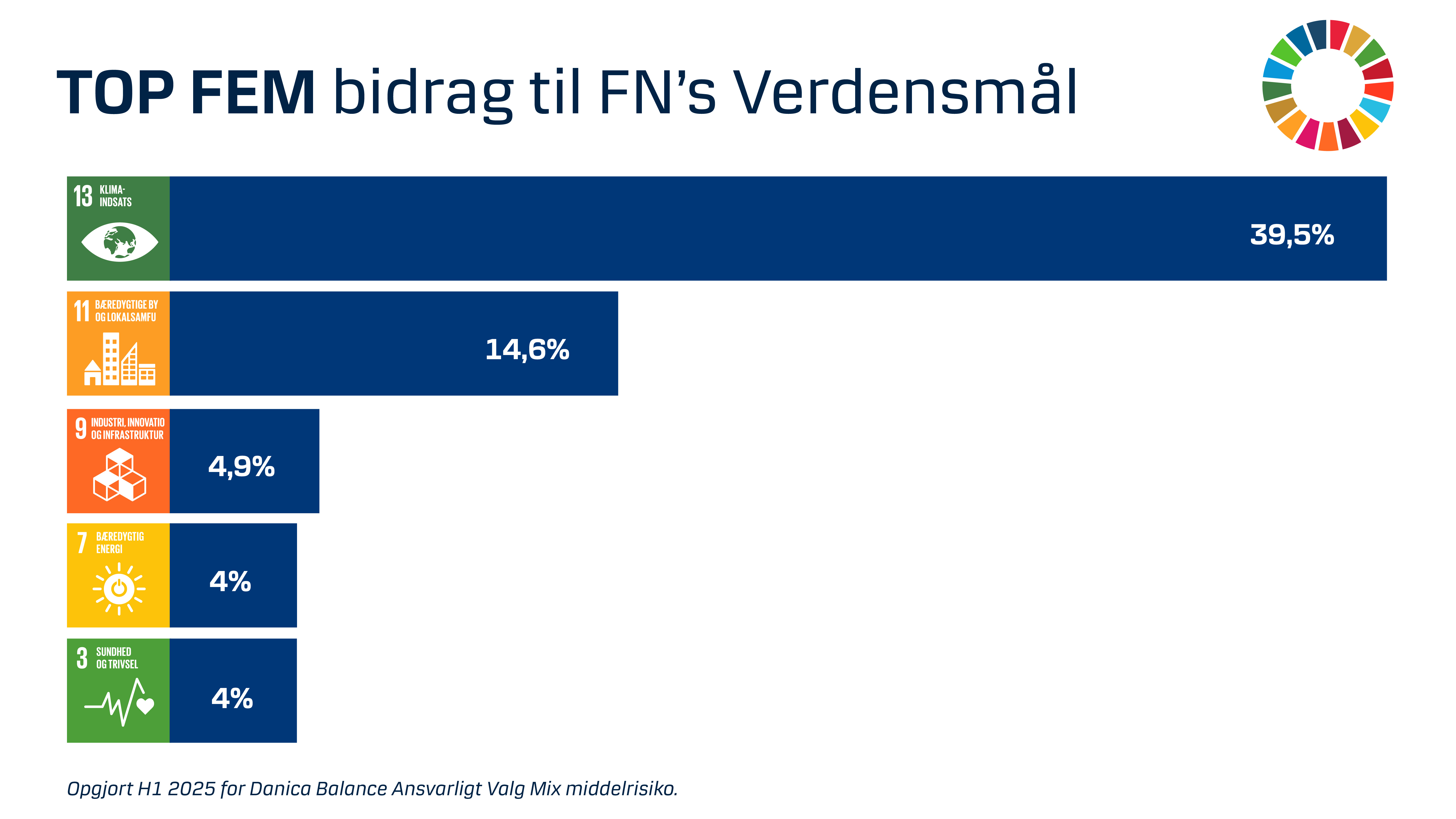 Da Danica Balance Ansvarligt Valgt har en stor andel af bæredygtige investeringer samt udvidede restriktioner, medfører det, at der automatisk fravælges flere investeringsområder. Det betyder, at du ikke den samme spredning af investeringer og risiko som ved det normale Danica Balance. Derfor er det forventede afkast i Danica Balance Ansvarligt Valg lidt lavere i forhold til samme investeringsrisiko ved Danica Balance. I praksis kan afkastet dog i perioder både være højere, det samme eller lavere.