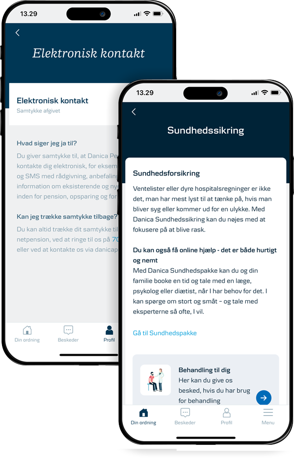 Med Danica Mobilpension får du et godt overblik over dine forsikringer, din opsparing og dit afkast. Når du vil og hvor du vil. Du henter appen i App Store eller Google Play.