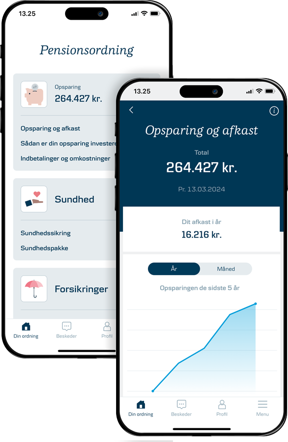 Med Mobilpension har du altid overblikket lige ved hånden. Du kan blandt andet se din samlede pensionsopsparing, dit afkast og dine indbetalinger.